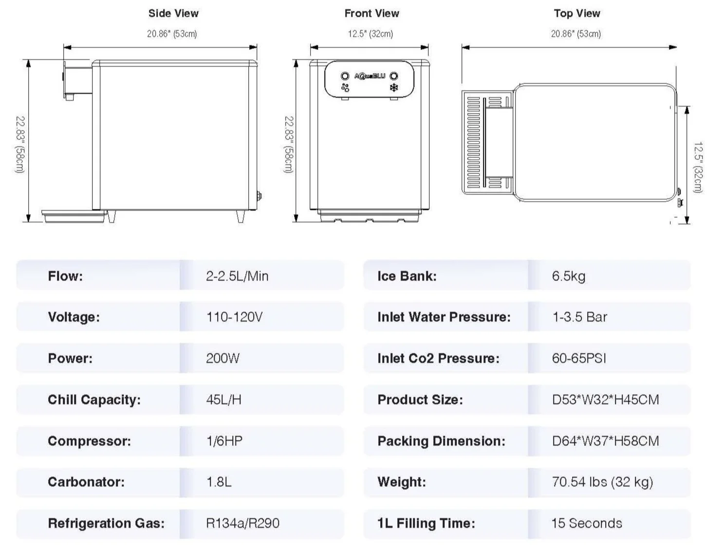 Thanks to its Ice Bank Cooling Refrigeration technology, this system offers a refrigeration capacity of 30 liters per hour, ensuring perfectly chilled and carbonated filtered water even during peak demand, with no downtime.